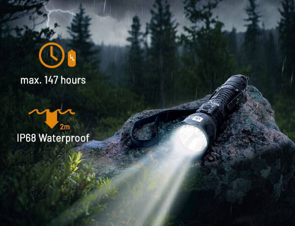 Dieses robuste und wetterfeste Gerät wurde für Jäger entwickelt, die auch unter extremen Bedingungen zuverlässig arbeiten müssen. Mit der Schutzklasse IP68 ist der Luminator staub- und wasserdicht und kann sogar in bis zu 2 Meter Tiefe getaucht werden.